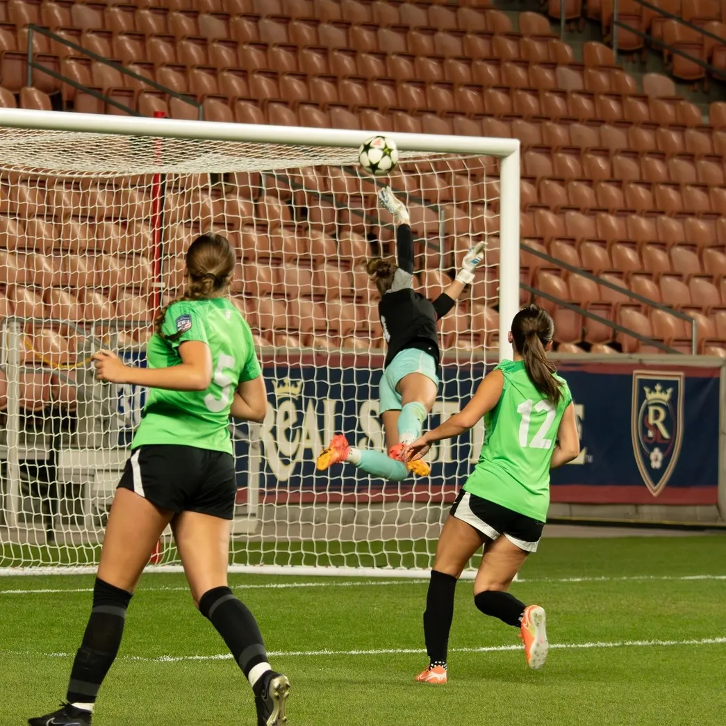 Two keepers face off on a split field, aiming to outscore each other by shooting, throwing, or drop-kicking the ball past their opponent, all while making big saves at the other end.